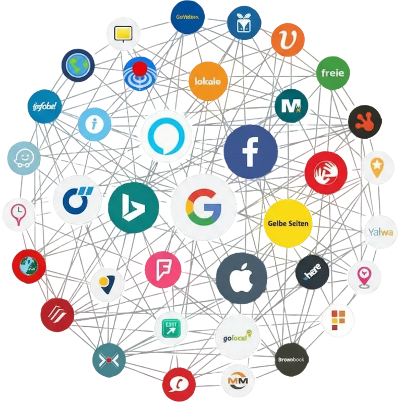 Wussten Sie, dass neben Google auch Apple Maps, Bing, Facebook, Instagram, TomTom, Waze, Cylex und dutzende Branchenverzeichnisse für Ihre Auffindbarkeit entscheidend sind? Wenn Sie nur auf einer Plattform präsent sind, verschenken Sie Reichweite.